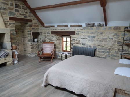 Incredible bedroom with high wooden beams, stone wall and a fireplace ! Bed 160x200 and 1 Bed 80x200 and a backroom with 2 separeted beds with 80x200. All beds are equipped with new 100% latex mattress. This suite is typical of the 17th Century Manor.